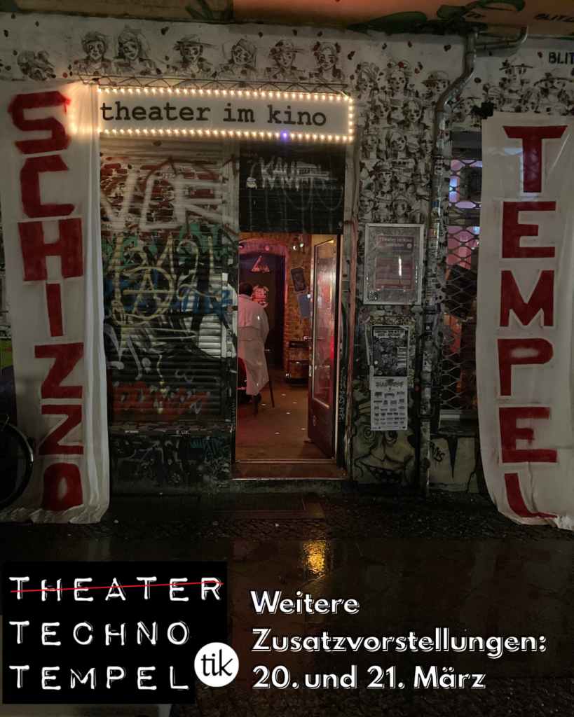 Ihr habt keine Tickets für unsere Produktion „THEATER TECHNO TEMPEL“ ergattert? Schlechte Stimmung, weil ihr deshalb nicht mitreden könnt? Das hat jetzt ein Ende. Es gibt noch einmal zwei Zusatzvorstellungen!