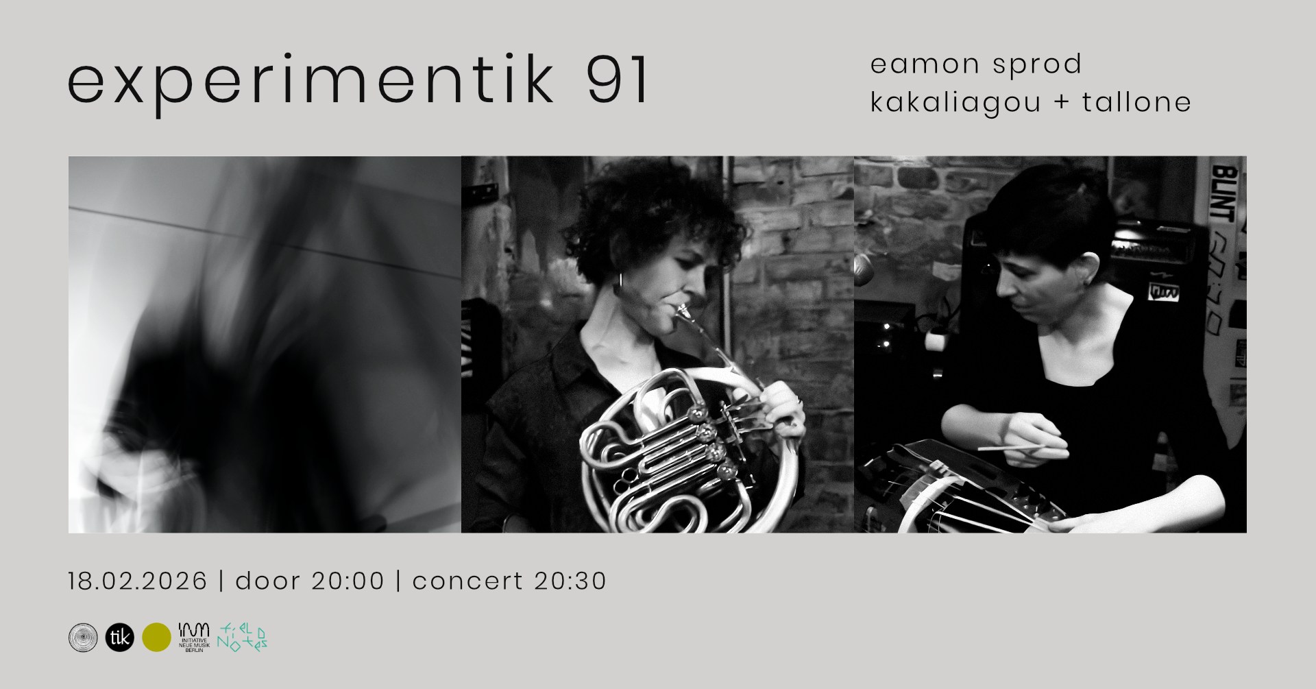 Experimentik #91 Eamon Sprod / Elena Kakaliagou + Caroline Cecilia Tallone solo:Eamon Sprod - borrowed sounds, electronics, speakers duo:Elena Kakaliagou - french hornCaroline Cecilia Tallone - prepared electroacoustic hurdy-gurdy, amplified...